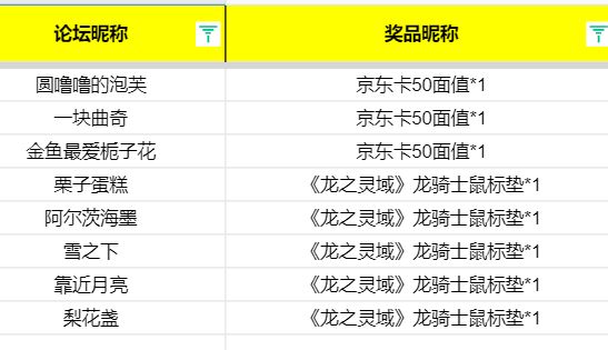 大家好,感谢大家积极的参与本次活动,现将活动中奖名单公布如下↓,没中奖的友友请不要气馁,多关注论坛最新活动公告,祝大家游戏愉快。