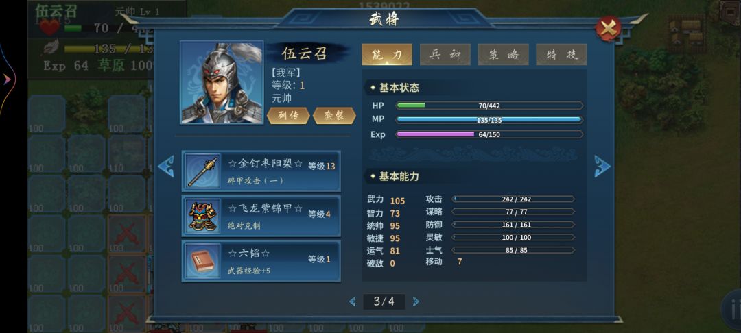 开局跑最下面,等伍天锡出来就可以去他后面了,上面裴元庆第二回合左移,然后一直往下跑,最后站好方块俩人攻击宇文练甲,小兵会反击完,就是会浪费点药,最后一回合先伍云召过去,然后裴元庆过去单挑过关,这应该是极限压级练甲的方法了