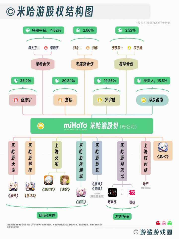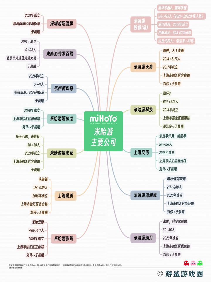 米哈游的母公司是米哈游网络科技股份有限公司,母公司之下还有十几个百分百控股的子公司,各自承担不同的功能。