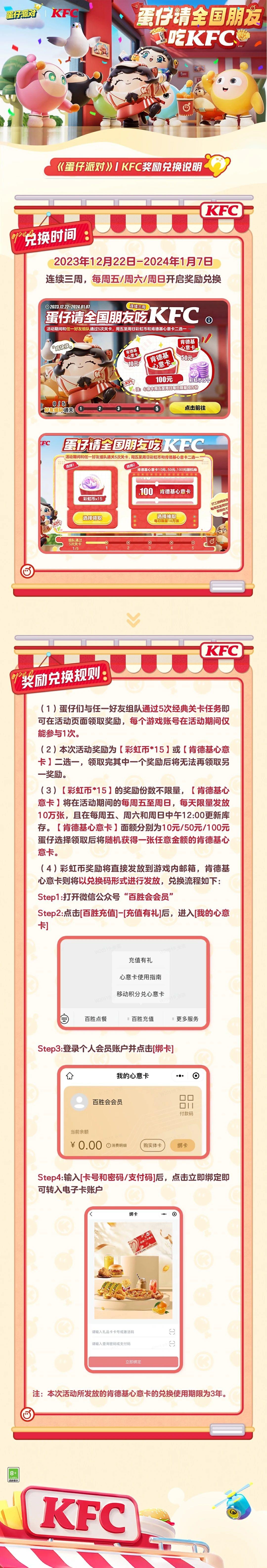 每日限量10万份肯德基心意卡或不限量15枚彩虹币