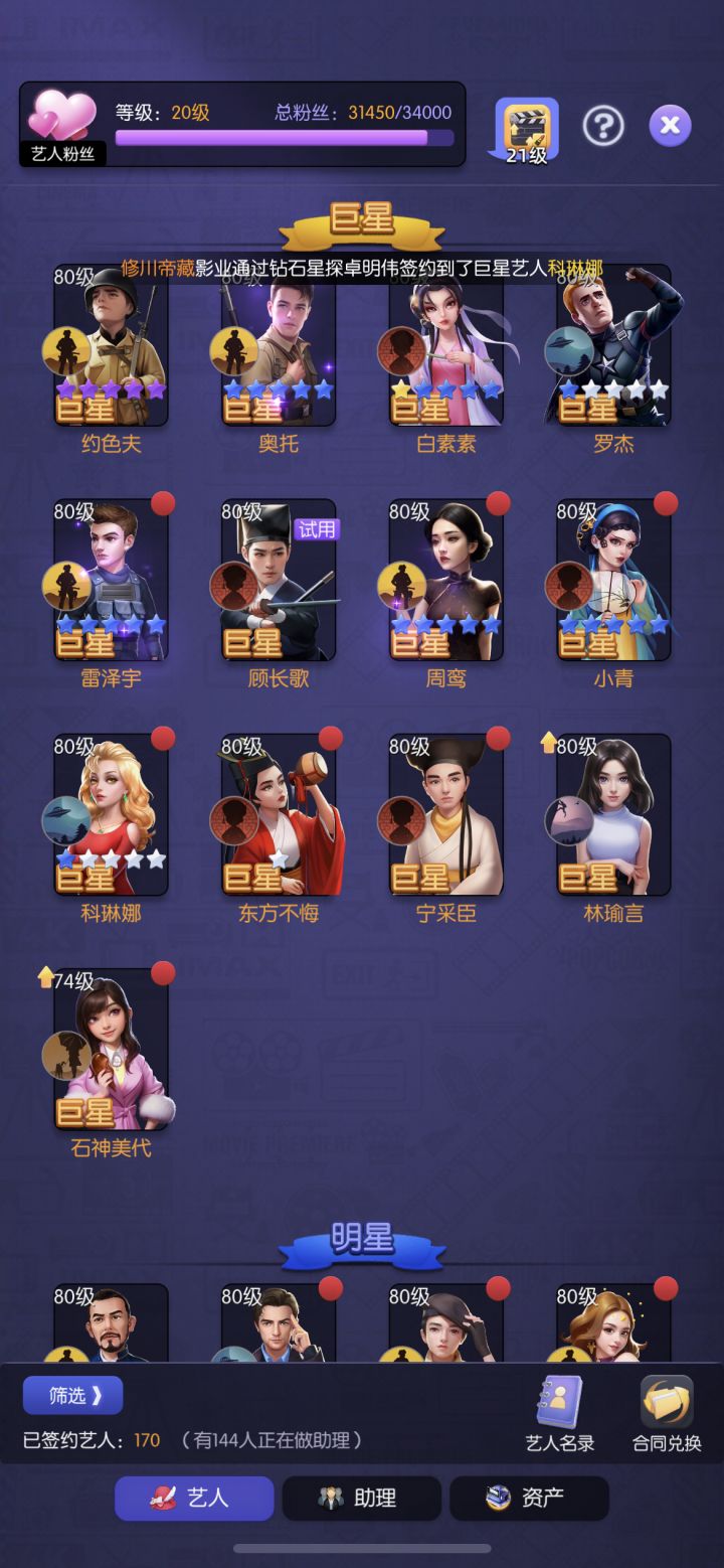A:艺人资产只要艺人达到30级解锁3个艺人助理后即可开启资产栏。