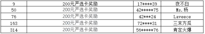 随机抽取5名少侠,每位少侠200元严选卡奖励。