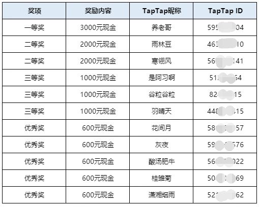 我们将选择优秀作品,在微信公众号、TapTap等官方平台发布。