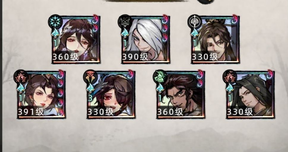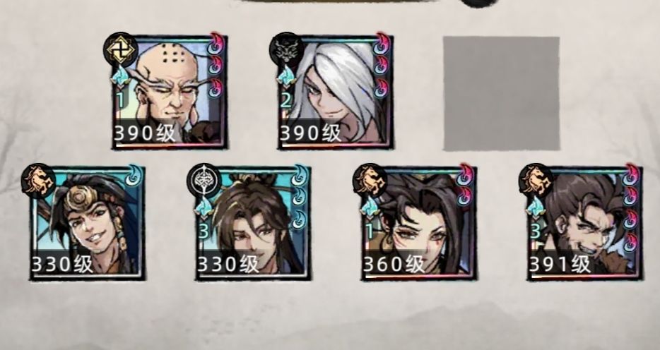 其他几个尽量选择 段延青 花清渊 阿紫 这些中立或者邪派强力角色,这样对于信物和狗粮消耗也能比较平衡。