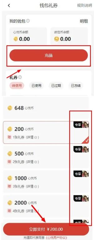 【充值入口】:点击心悦商城入口进入商城-进入我的钱包-点击充值-选择有隋唐优惠券的心悦币充值选项(右上角有隋唐标识)即可充值心悦币。
