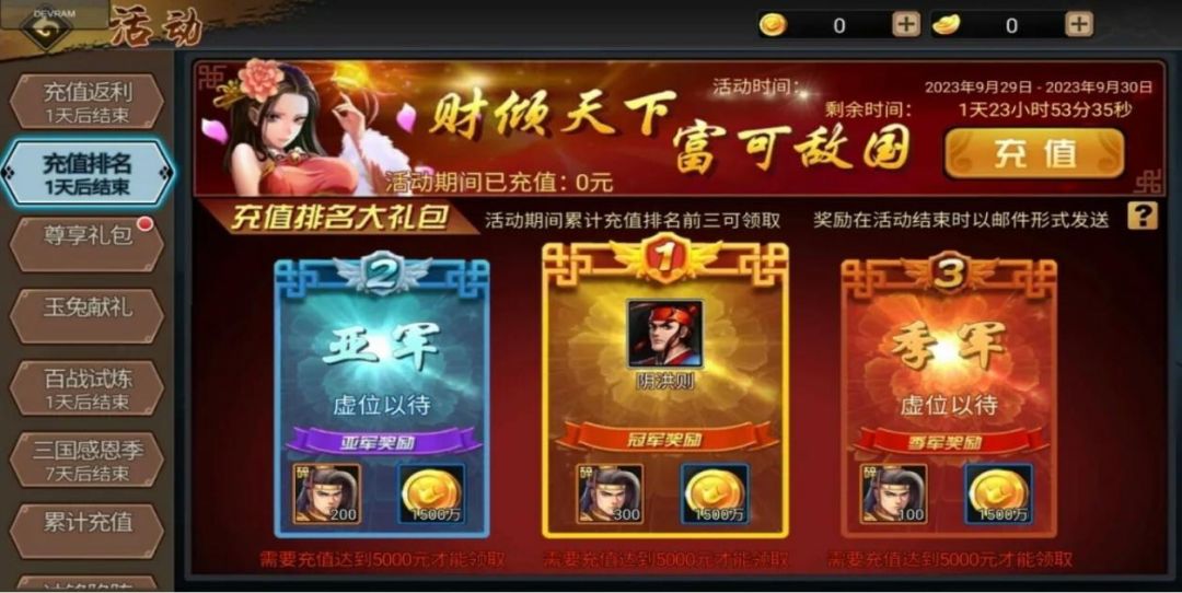 12月28日-29日,活动最后一期充值排名,奖励换成当前炙手可热的极品援军周瑜碎片。