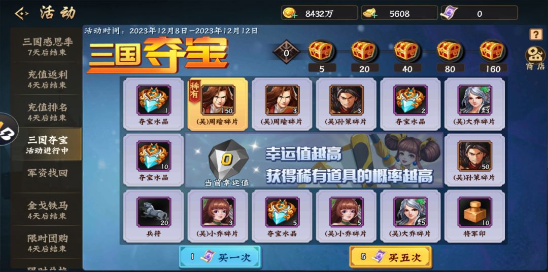 五.三国夺宝异宝来袭,幸运宝藏好运不断