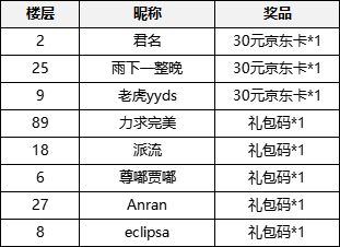 抽取3名指挥官,每人各获得1张30元京东卡
