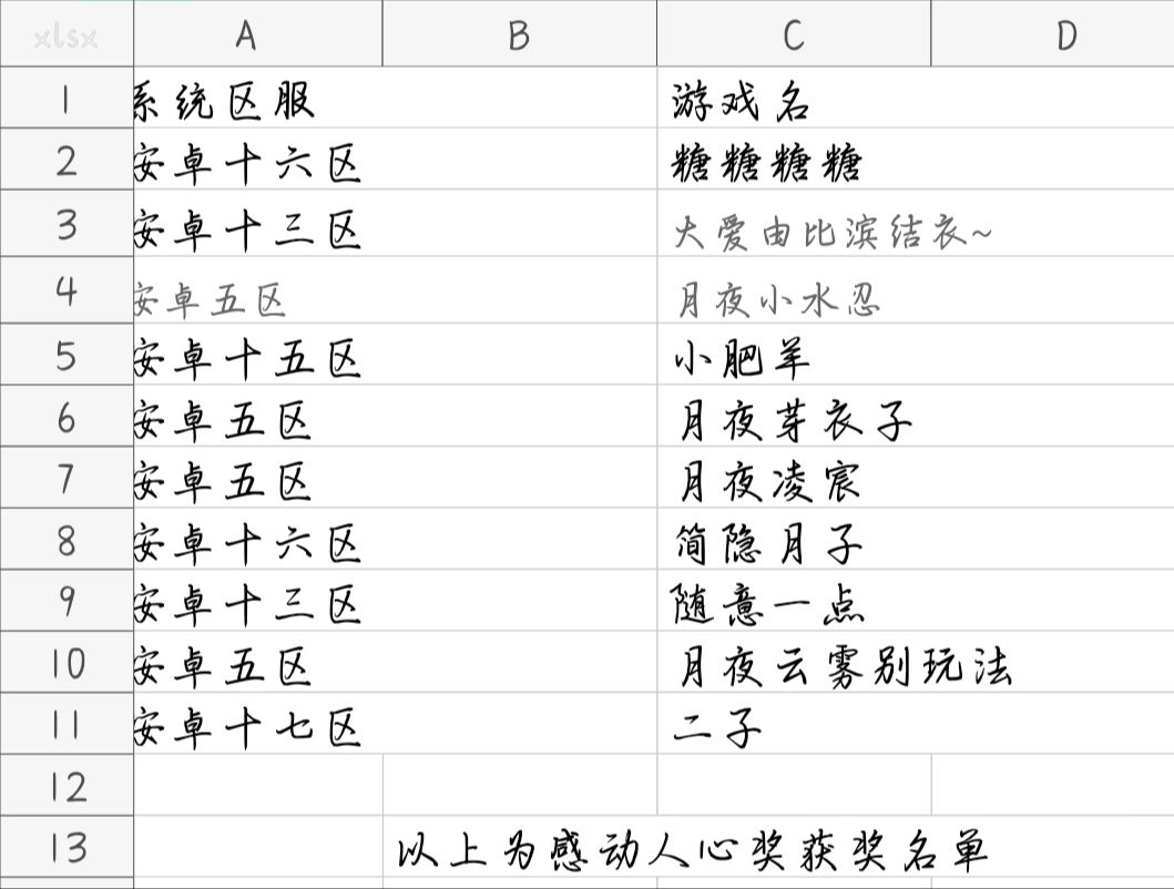 注:本次活动共评选25名获奖玩家(分别是10名感动人心奖和15名幸运奖)