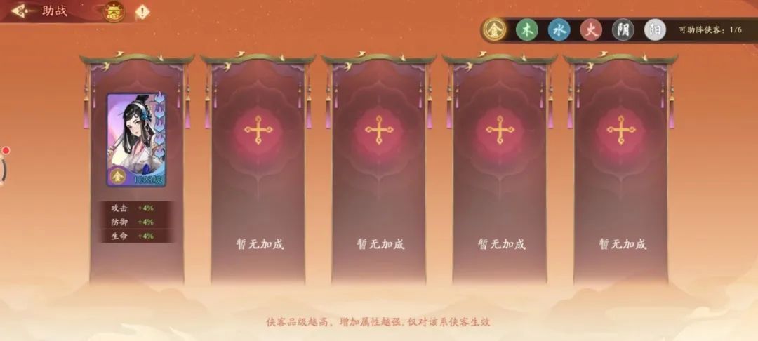 助战系统是本次新版本的重磅玩法之一,师兄师姐们可以在已有的阵容基础上,开展更多的阵容,被替换的侠客仍可在阵容中提供属性加持,已培养较高等级的侠客仍可发挥作用。