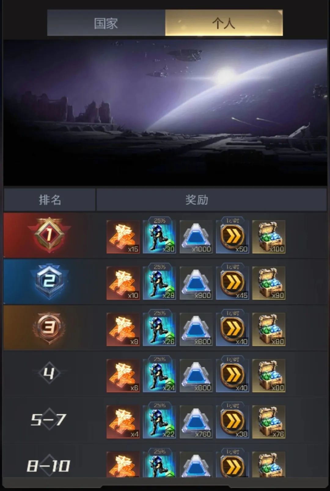 国家排名奖励