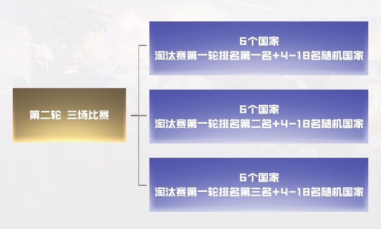 第二轮比赛18个国家参赛,共3场对局,每场对局中排名前4名的国家进入下一轮比赛;