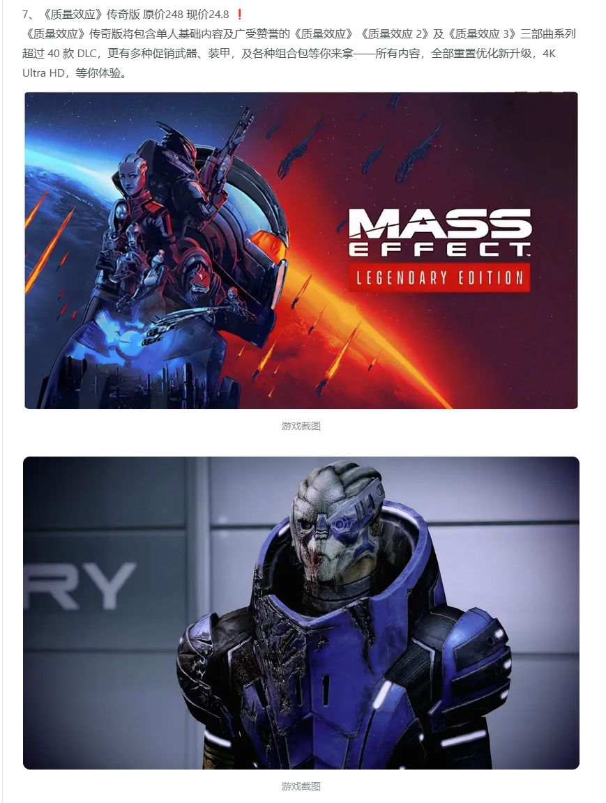7、《质量效应》传奇版 原价248 现价24.8 ❗