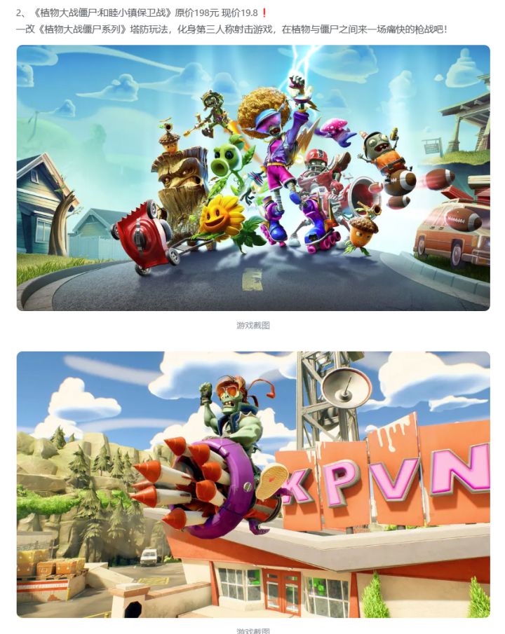 2、《植物大战僵尸:和睦小镇保卫战》原价198元 现价19.8❗