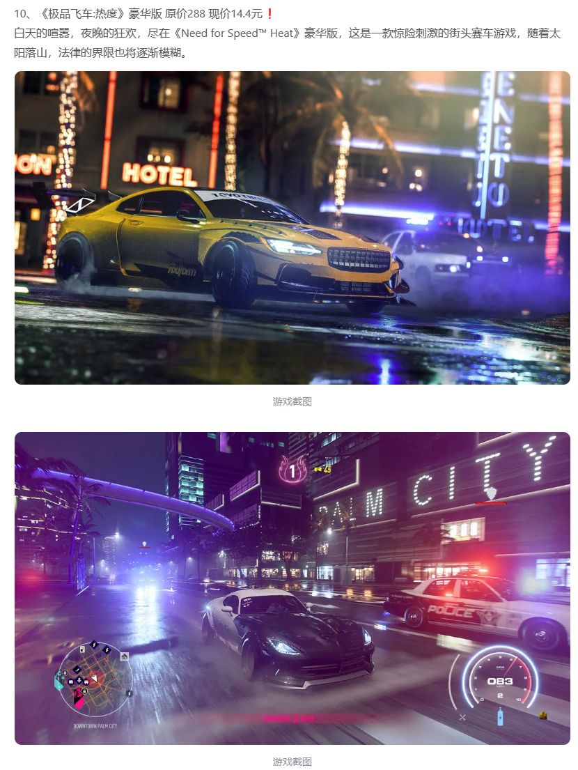 10、《极品飞车:热度》豪华版 原价288 现价14.4元❗