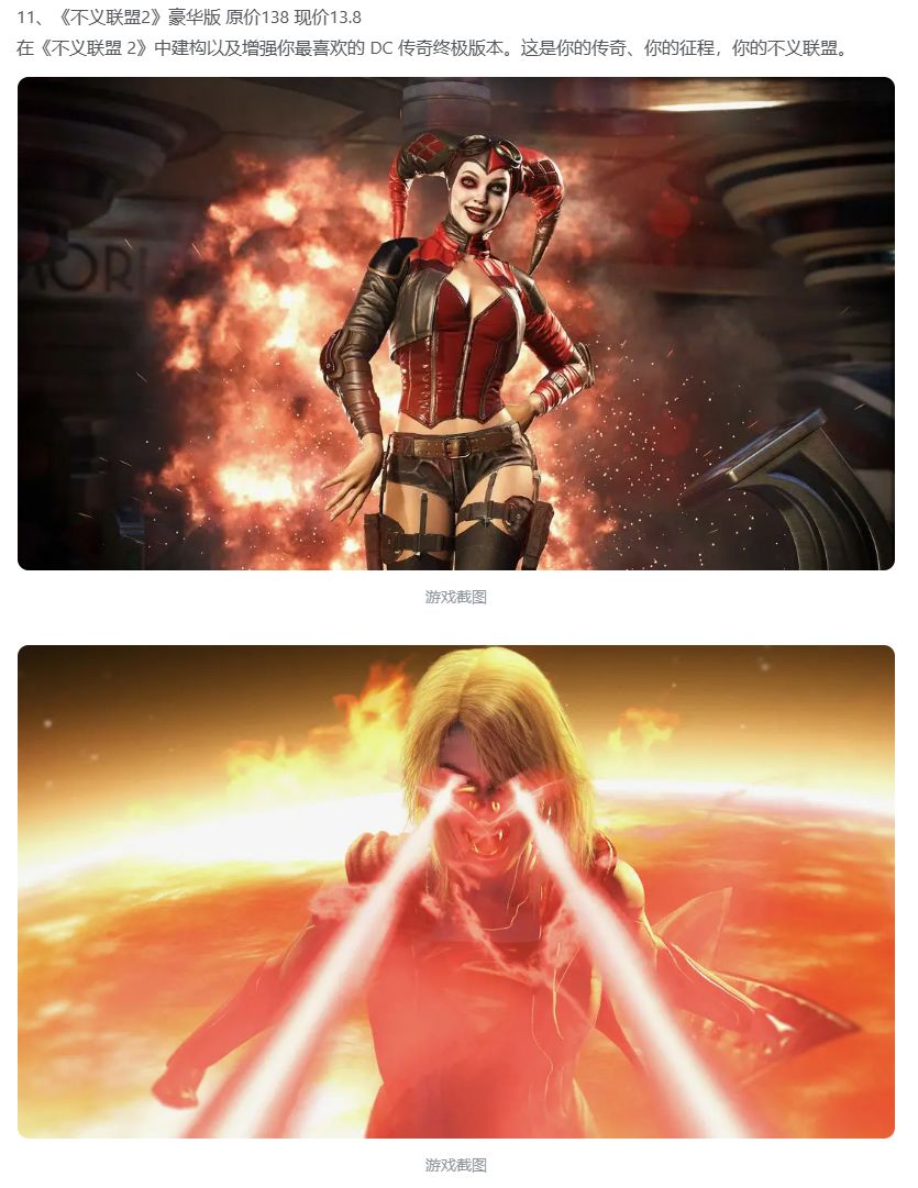 11、《不义联盟2》豪华版 原价138 现价13.8