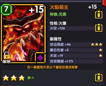 首饰魂卡:火焰领主和炎魔绑定,无法更换,主属性火攻,副属性 爆伤>火攻>暴击值>攻强