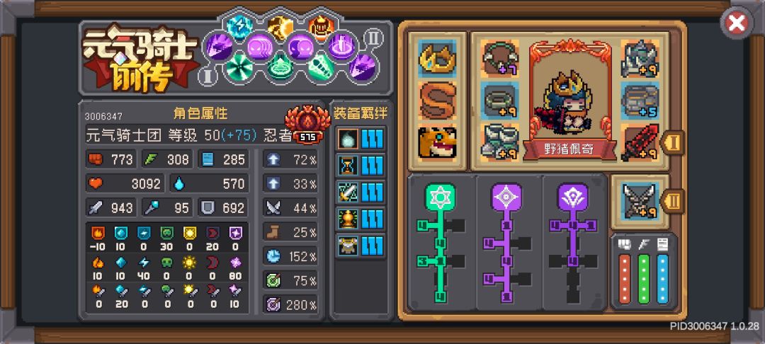 重甲羁绊很重要,因为有减伤。宠物技能也学那个减伤的,忍者不缺伤害,打塔到后期就防止被秒就好了。双刀词条只有冷却有用。因为有统帅可以召唤四个分身,但是建议只召唤三个分身,主要是防止被秒。