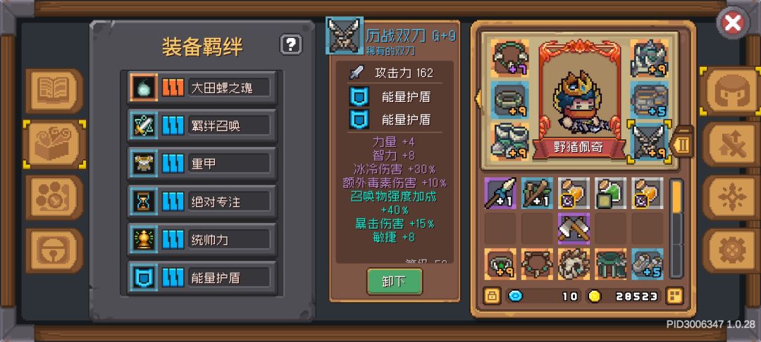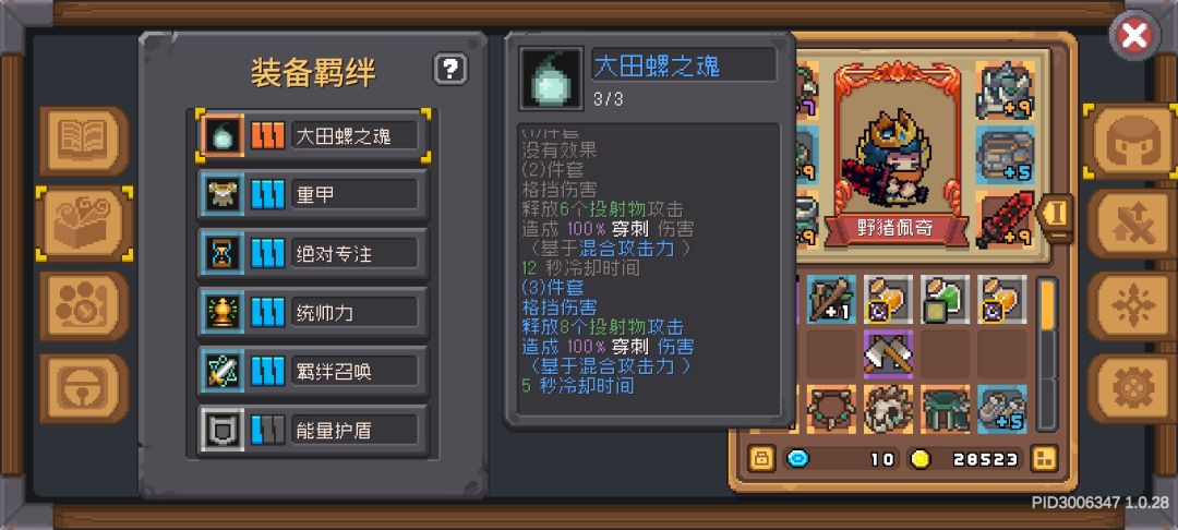 【羁绊】:绝对专注,能量护盾,羁绊召唤,统率力,重甲,大田螺之魂。