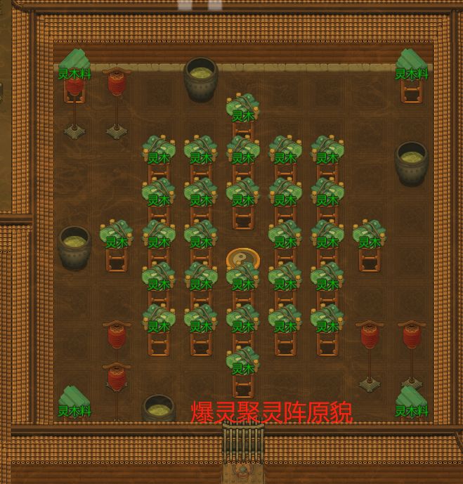 操作方法为【法座周围一圈(8个置物台)放上五种不同属性的聚灵然后剩下的全部放灵木】。一圈以外可以放灵木的原因是灵木影响五行范围有限,如果在法座周围一圈以外的话就基本对法座五行没影响了,所以一圈以外用廉价的灵木填充。