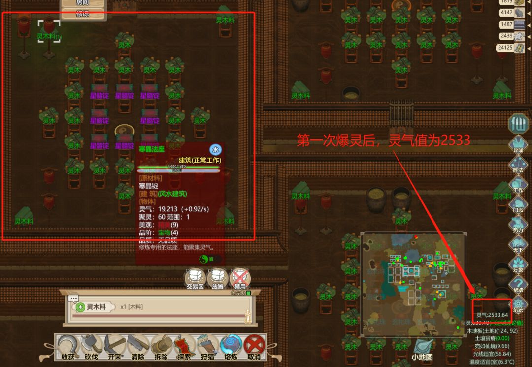 以上循环即可,记得在设置里打开聚灵值显示,聚灵阵周围的聚灵值满的时候爆灵效果最好