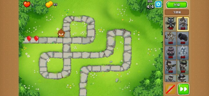 这局核心在于两点,三次换飞镖猴的位置,换的时机在于中间蓝气球的击破。