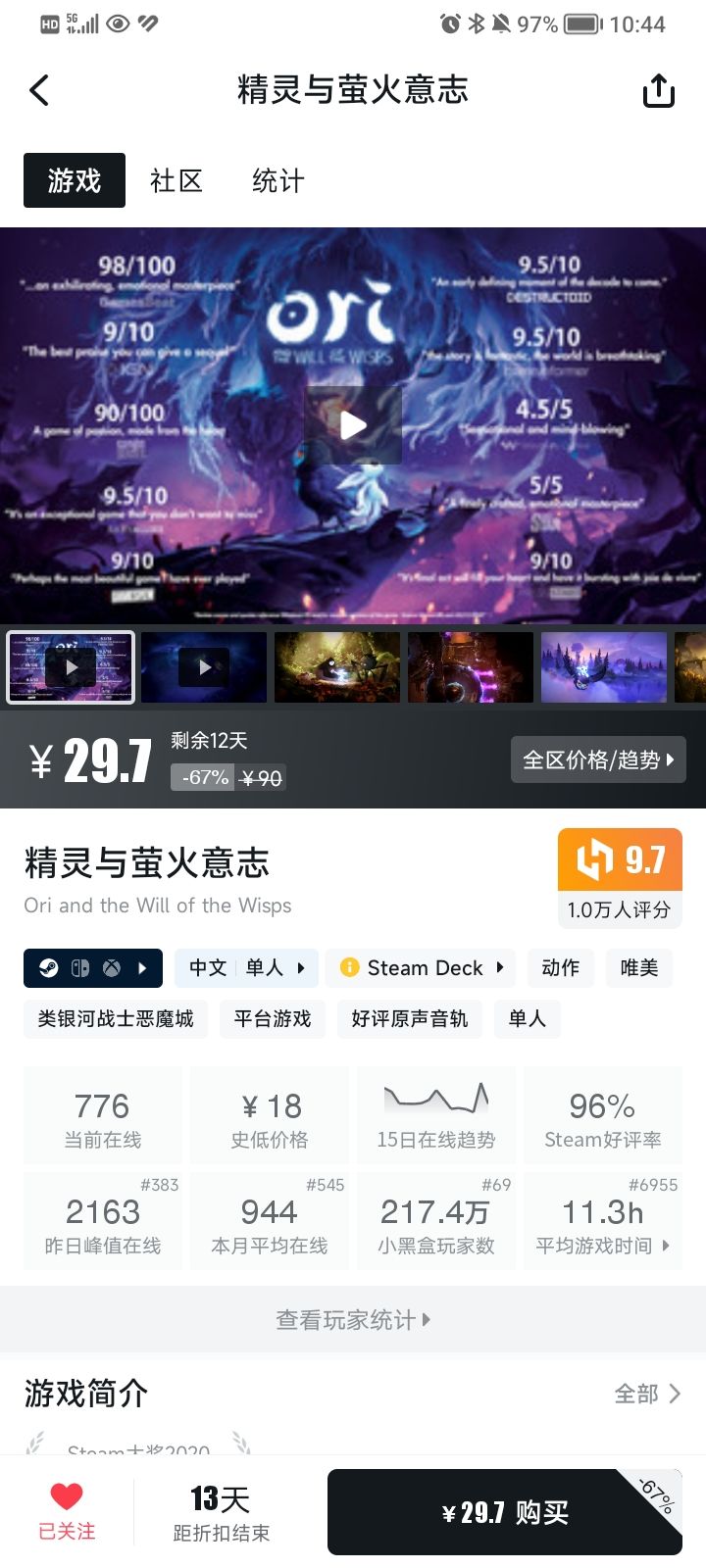 1.《精灵与萤火意志》(Ori and the will of the wisps)