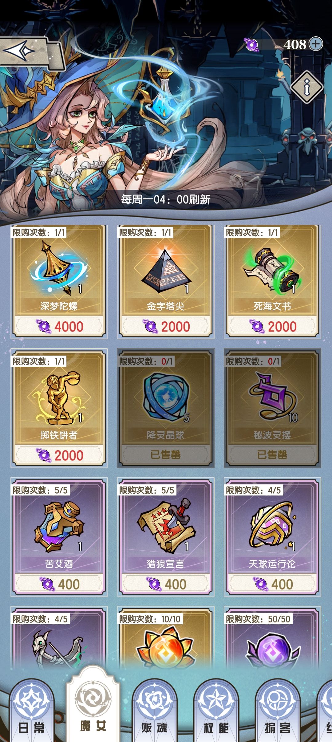 接下来说一下奖励,周排名奖励丰富,而且奖励设置的非常友好,排名奖励曲线平滑不至于头重脚轻,前百名都可以白嫖ssr藏品,看得出来策划很在意大众玩家的游戏体验,值得赞赏。另外,每层副本通关还可以获得蓝色藏品升级石头和噩梦气泡(魔女商点货币),目前35层,通关每半层可获得8蓝石头+36噩梦气泡。商店兑换一本sr藏品需要400气泡,大概爬6层可以兑换一本sr藏品。由于boss难度梯级设置的非常陡峭,后边爬塔很难拉开差距,所以想靠爬塔的通关奖励在商店买买买不太现实。当然这也是策划有意在抑制氪佬玩家的碾压优势,另一方面也是防止大家太肝,设计是好的。所以,如果卡图了可以尝试多攻略几次,不行就等战力提升,自然就过了,没必要死磕,在卡图这件事上,我们与究极氪佬的烦恼是一样的。