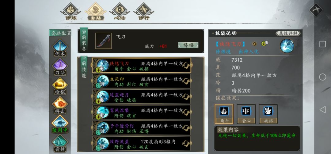 一代宗师难度,主玄冰,副九阴,北冥,金阳,白板小飞刀(小李飞刀),不吃任何加buff的书籍和食品,除了正邪大战和玄天宗大战需要策略手动操作,其余战斗都是自动,最终决战孟启开自动将其按地上摩擦。