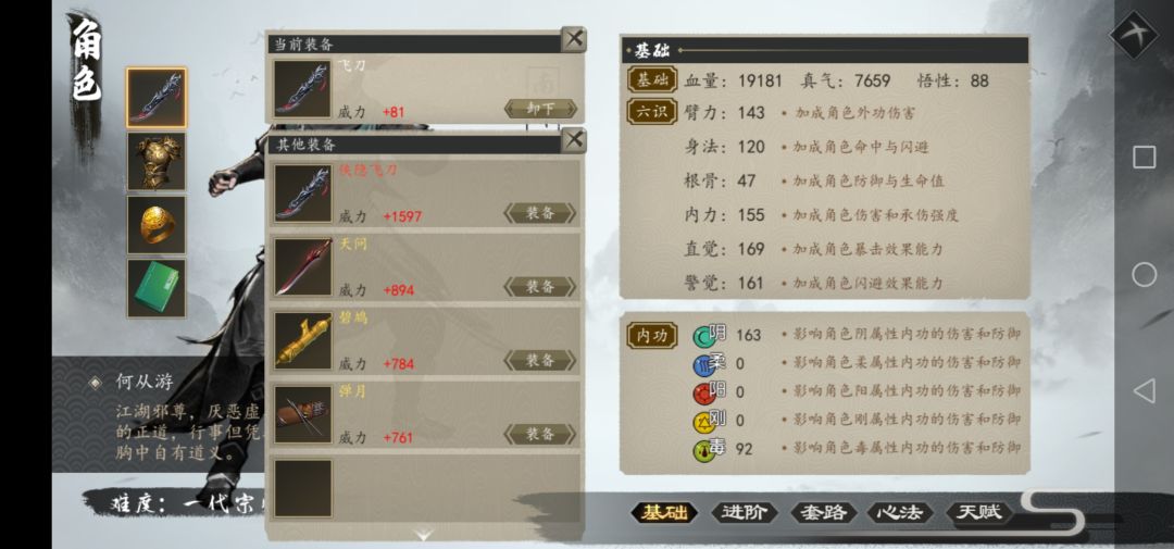 游戏的难度还是有待提升,应提高武学收集难度,即使开挂,神功不是那么容易获得,也不那么容易练成。再者,设定武学修炼限制,地绝及以上武学只能装备一至两门,人绝及以下随意,注重人绝心法设计,提升游戏可玩性,太多人绝心法都是压箱底的,都没仔细了解过。听说要出自建门派了,希望能开发自创武功和心***能,主角一代天骄,自创顶级武学不在话下![[嗒啦啦2_吃瓜]](https://img.tapimg.com/market/images/6eb1d083dff1c09692102cb5a98727f3.gif)