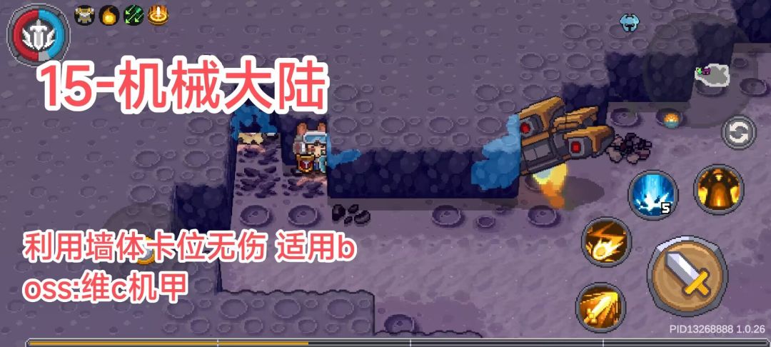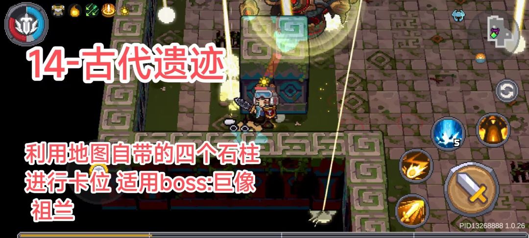 注:涉及地形的操作都可以使用 炸弹/跳跃打击技能 进行 ,炸弹可在996商店后期获取,多个道具栏cd单独计算