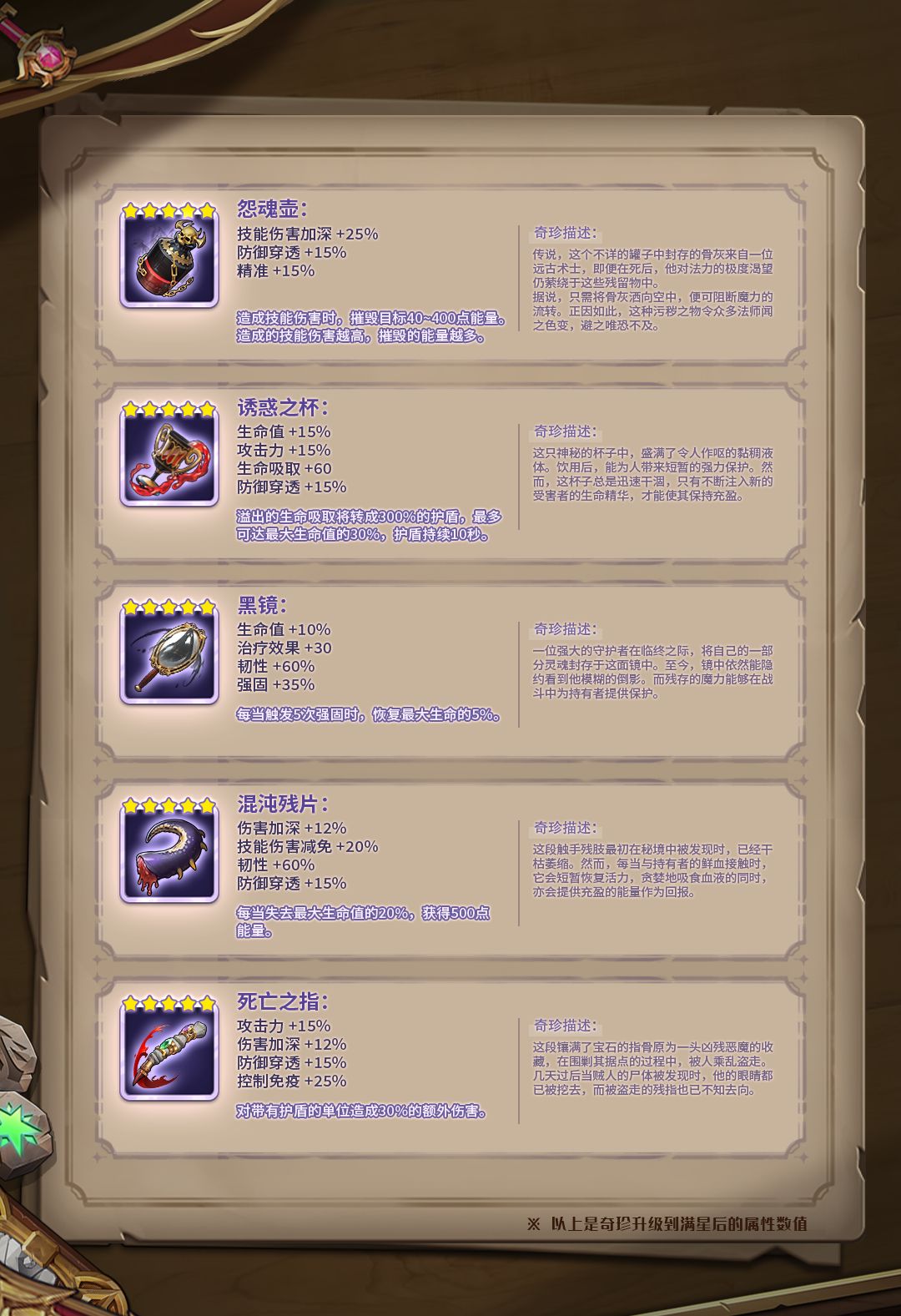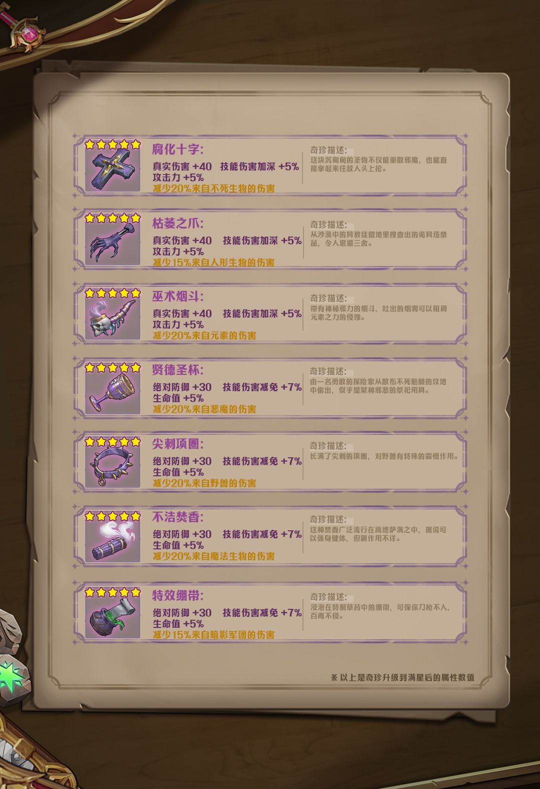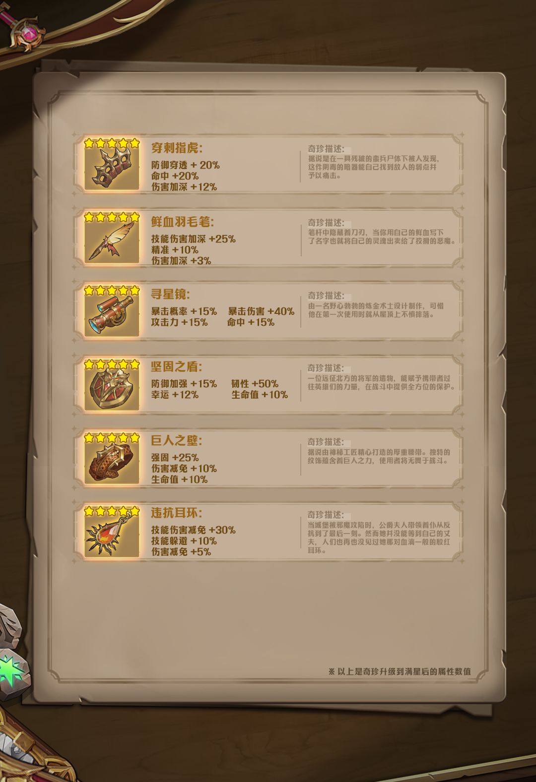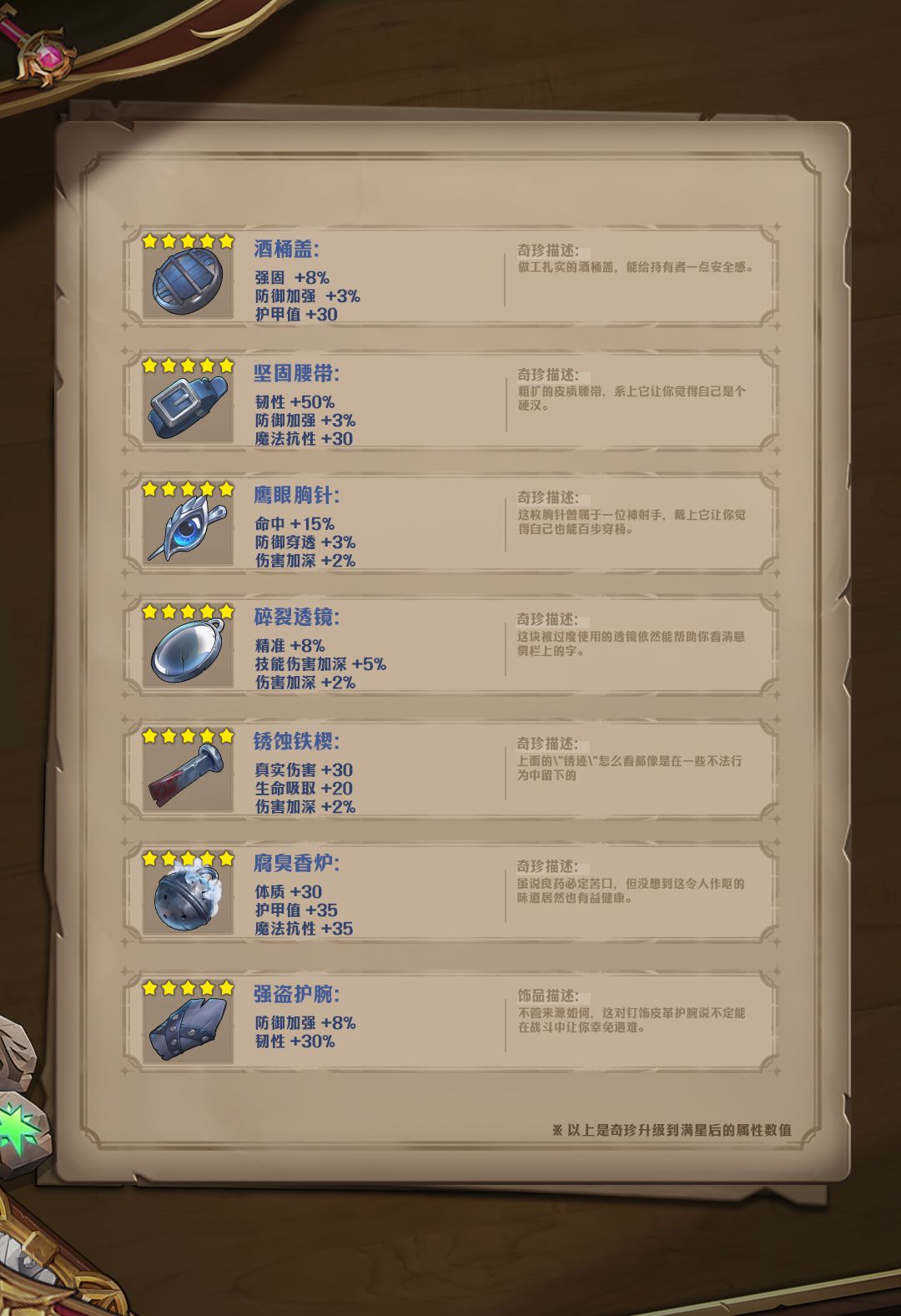 拉拉姆从策划那里套来了这些小玩意儿的满星属性信息,希望能帮助冒险者提前规划,选择最适合自己的奇珍。