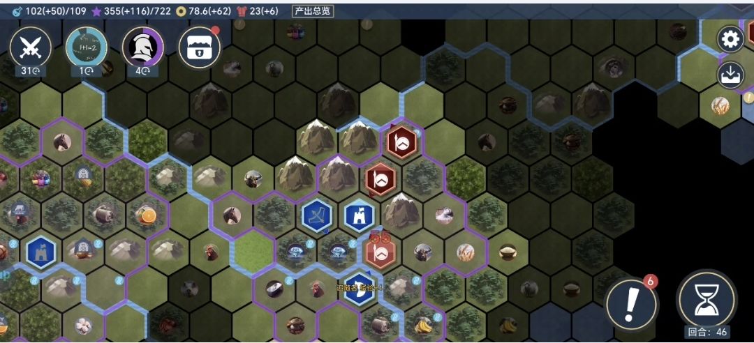 追随者红线,先清左边营地,坐城后拆营地SL2兵力,2回合出移民,7回合拆左上营地(图3),14回合拆右上营地(图4)