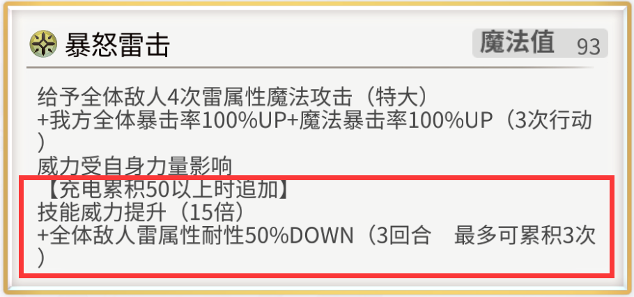 所以AF中记得在充电满50以后开或者补开雷雨技能,同时薇列特要打输出也需要等充电满50以后才有伤害!