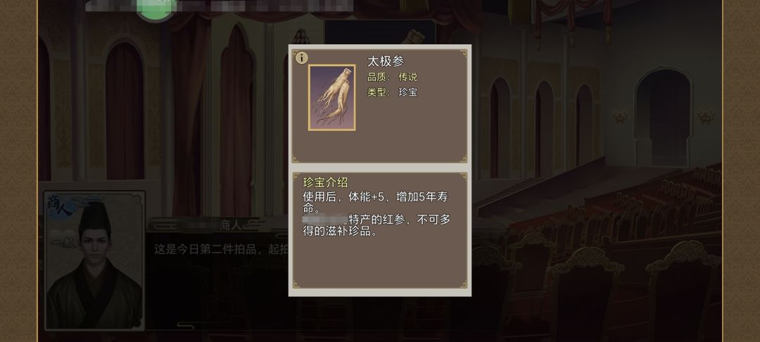 (2)事件:净堤寺,剧情选择赌两年阳寿,成功后失去60体力,获得:[益寿延年丹]×1+[戏子]副职宝物:龙袍(概率获得,失败会降低两年寿命,建议SL)。