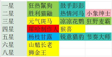 登场特性相关:狂热鬣狗、胜利猫鼬、犀哈制作人、杨枝甘露、山魈长老