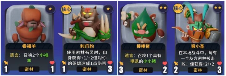 遗言特性:卷福羊、棒棒猪、影狼之刺、巨锤猩猩、神秘狐、小浣熊、牛盾守卫、巨拳袋鼠、熊蜜士