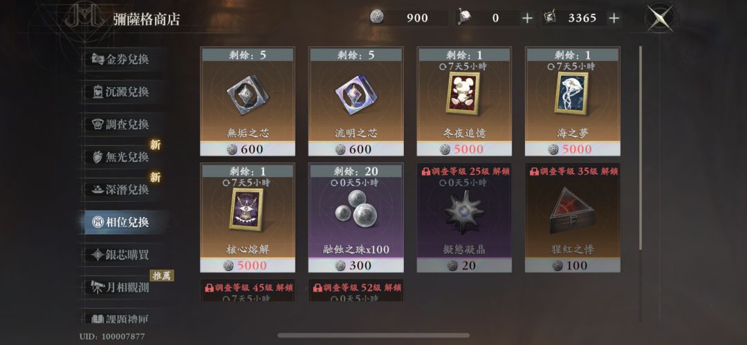 这些可以拿去兑换5个无垢之芯或流明之芯