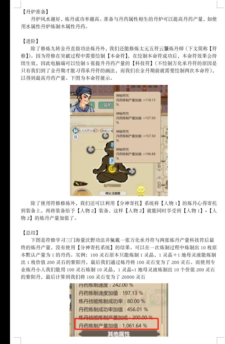 前言:其实炼丹师培养方法没什么特殊的,唯一有特点的几个东西就是突破所需丹药和符修变成炼丹师的方法。taptap发帖不能贴图,详见下图里的word文档截图