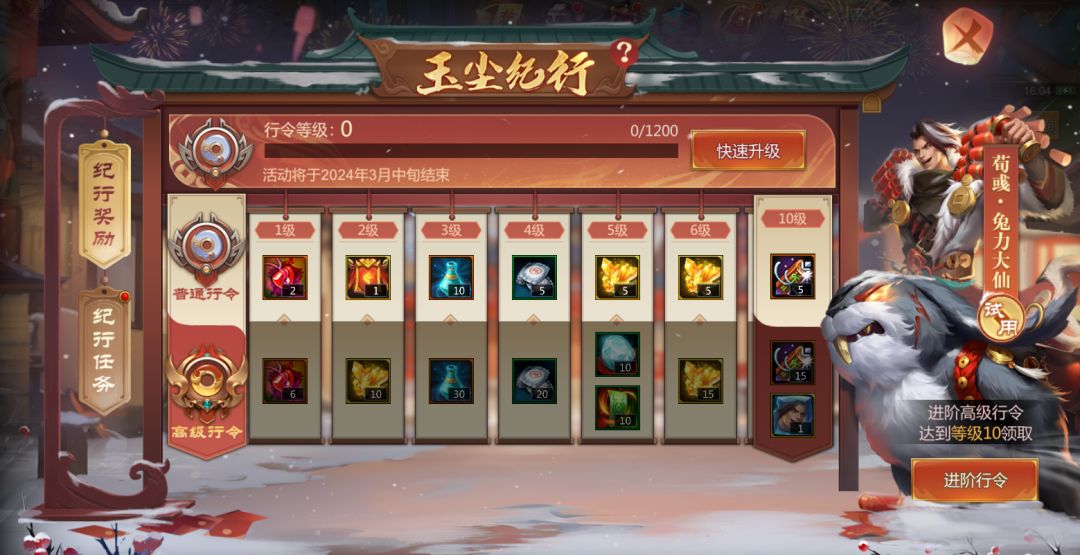 纪行主要分为普通行令和高级行令两种,上方普通行令奖励,下方为高级行令奖励。