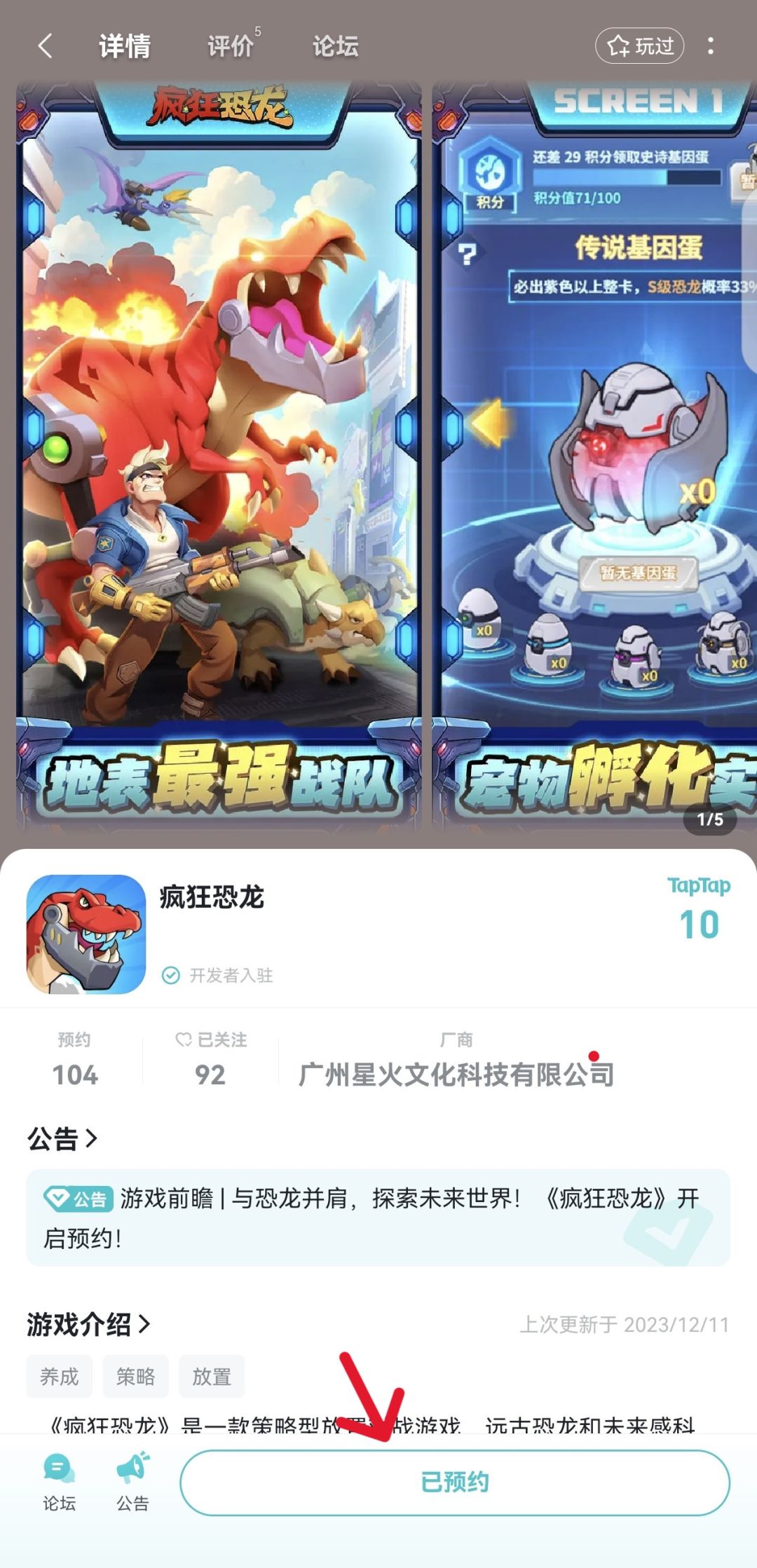 在评论区留下在taptap已预约疯狂恐龙游戏的截图,即可参与抽奖
