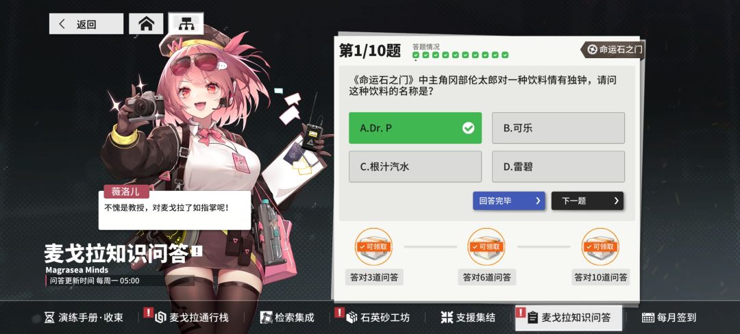 这期知识问答是命运石之门专题哦,10题全部答对以后有高级检索指令×1