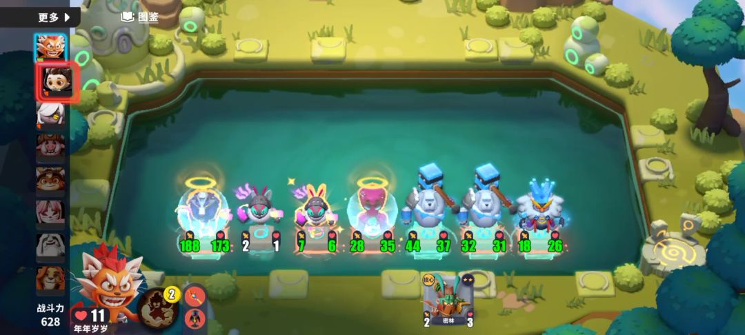 双头犬加强后变为战斗胜利即可积累技能进度,在第一关难度较低情况下,前期选择稳定养双头犬,中期双头犬拿到护盾情况下选择熔岩贝+融核蟹经典组合,又选择瓢虫斥候+羊玲奶奶成长商店,为后期甲虫都尉稳定增加属性做准备,同时配合秘蜂传令官增加双头犬属性。后期大量搜卡成型阵容。