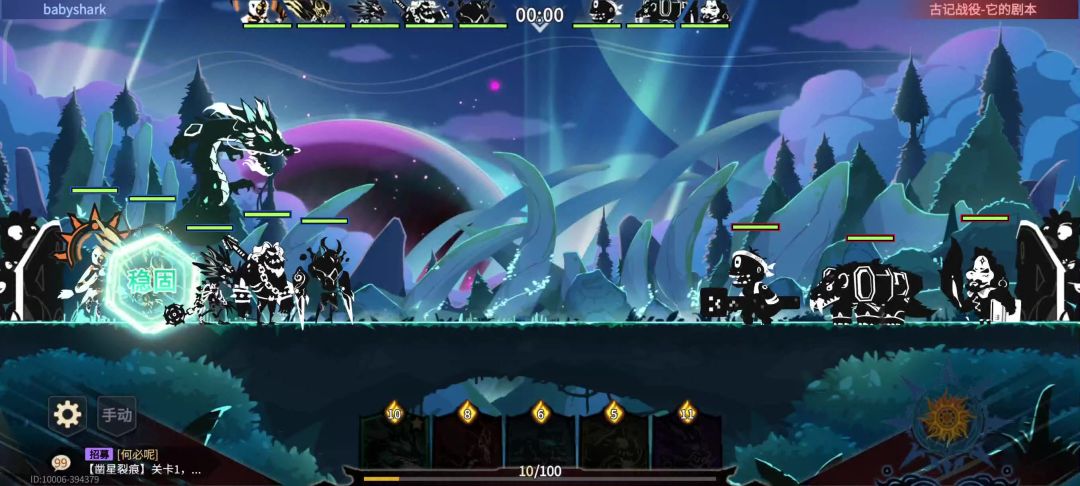 阵容如图,开局被击退后过一会放麒麟,之后玄武好了立马放