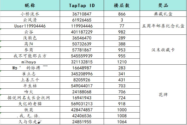 2.获奖的主公需要提供的信息包括:获奖回复截图、taptap个人主页截图、相关收货信息(收件人姓名、联系电话、详细收件地址);如因登记信息有误或快递派送时无法取得联系而导致奖品派送失败等,不进行二次发放,还请谅解;