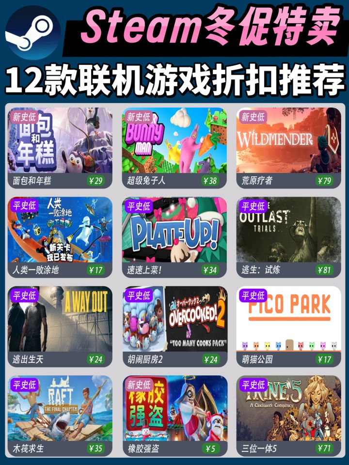 整理了12款冬促多人联机游戏史低~接下来还会有乙女、解谜等史低合集!