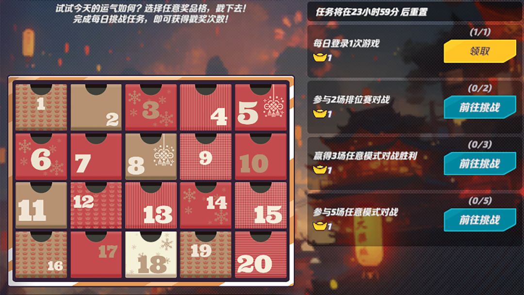 完成每日挑战任务获得“开心戳戳乐”开奖次数,选择任意奖品格进行开奖!