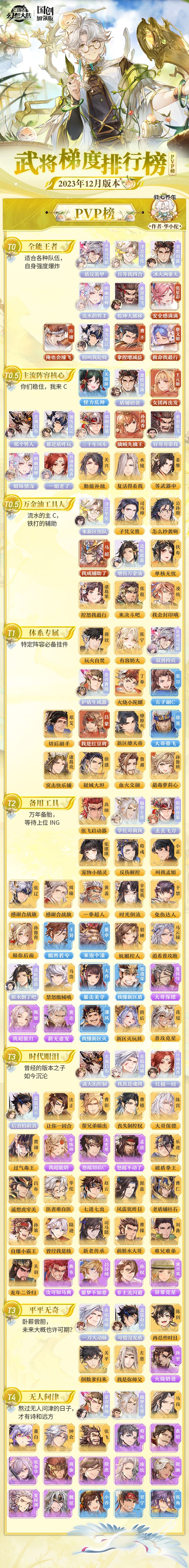 玩家攻略丨当前版本T0武将花落谁家?武将梯度排行榜第12弹(PVP篇)