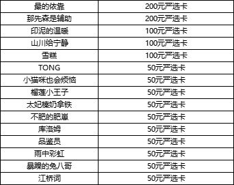 3、随机抽取10位萤火虫,送出价值50元严选卡。
