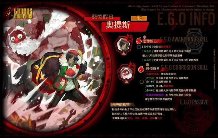 以英文为例(日韩同理),本次异想体名与脑叶的“Christmas - 悲惨圣诞”E.G.O装备不同。